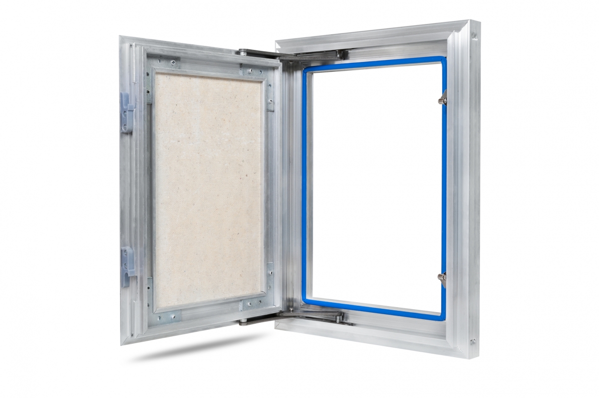 Рама люка для ревизии «Триумф» выполнена из алюминиевого профиля коробчатой формы и Г-образной в сечении для максимальной жесткости и удобства монтажа. Дверца люка изготавливается и алюминиевого профиля Т-образной формы, переменного сечения, с выраженными ребрами жесткости, что делает её конструкцию более жесткой в отличие от своих предшественников. Так как немаловажно исключить перекосы конструкции дверцы, чтобы не допустить деформации наклеенных на нее материалов. В отличие от наших конкурентов, толщина стенок алюминиевого профиля у нас по-прежнему 2 мм и более.