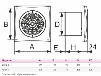 Модели с индексом «C» комплектуются двухстворчатым подпружиненным обратным клапаном из ABS пластика, для предотвращения обратной тяги из вентиляционного канала.
